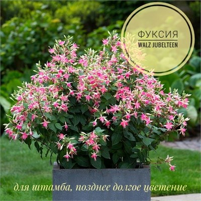 Walz Jubelteen является совершенно особенной фуксией. Из-за цветения, которое продолжается более длительное время и из-за крепкой структуры растения Walz Jubelteen очень популярен. Рекомендуется для выращивания на стволе в качестве штамбовой фуксии, но этот вид подходит также для выращивания в других горшках (10 - 19 см).