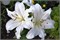 Белый, тычинки ярко-оранжевые, легкое гофре по краю, высота растения - 110см