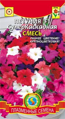 Каскады огромных изумительных цветков новой гибридной петунии будут без перерыва украшать Ваш сад с конца июня по октябрь и привлекать к себе Ваше внимание своей яркой окраской. Эта СуперКаскадная петуния характеризуется более ранним началом цветения и более длительным периодом цветения по сравнению с другими петуниями, в процессе цветения образует каскады цветков на поникающих стеблях. Идеально подойдет для создания смешанных или одиночных цветочных композиций в висячих корзинах, балконных ящиках. Имеет все положительные характеристики, ожидаемые от современной петунии: короткий период выращивания, продолжительное цветение и устойчивость к тяжелым погодным условиям.
